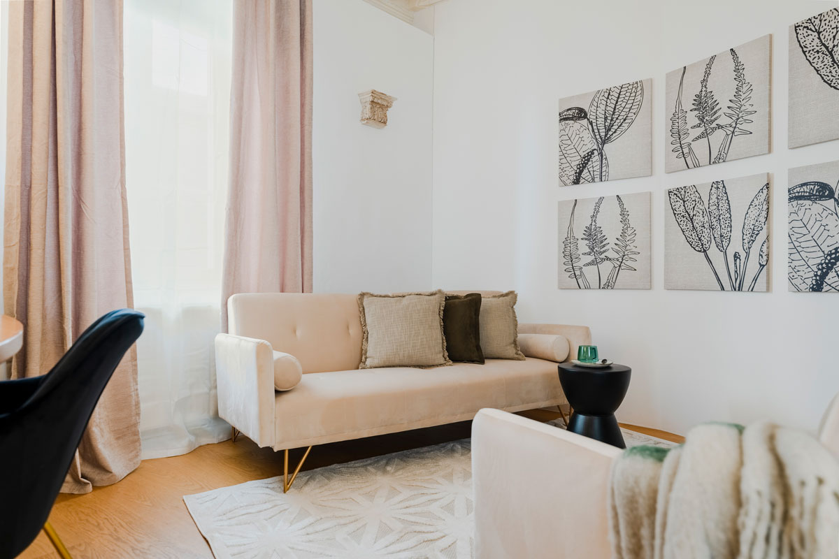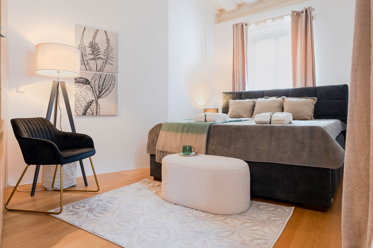 Die Ferienwohnung umfasst ein separates Schlafzimmer, ein gemütliches Wohnzimmer, eine voll ausgestattete Küche mit Herd, Kühlschrank, Geschirrspüler sowie Kaffee- und Teezubereitungsmöglichkeiten und ein modernes Badezimmer mit Dusche und Badewanne. Zur Ausstattung gehören außerdem eine Waschmaschine, ein Flachbild-TV mit Streamingdiensten, kostenloses WLAN sowie schallisolierte Wände. Handtücher und Bettwäsche sind selbstverständlich vorhanden.
