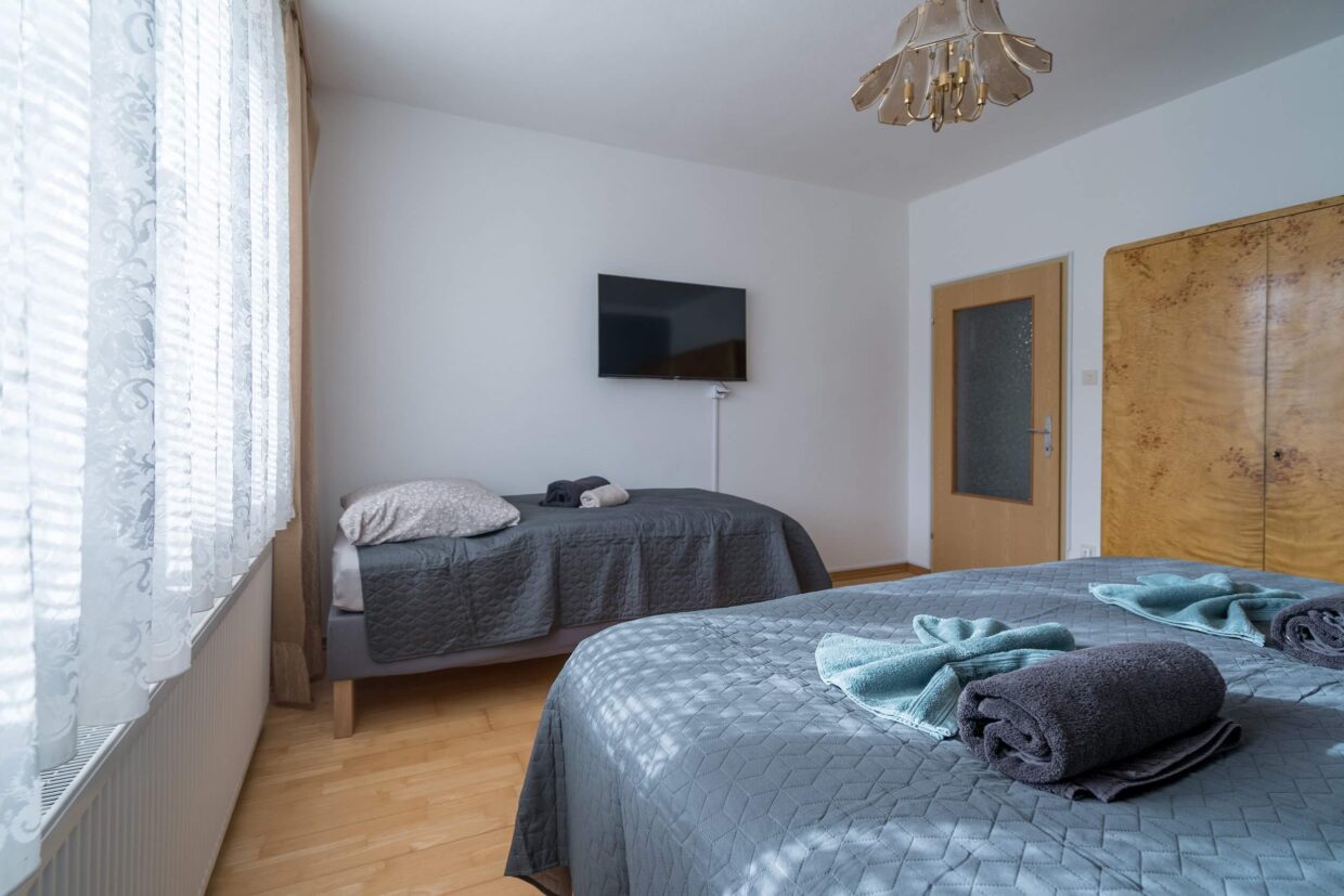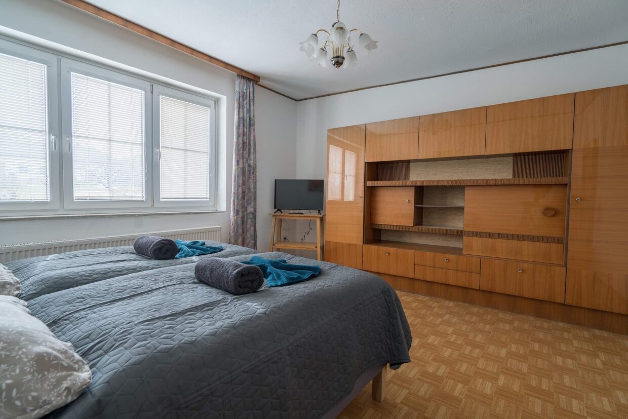 Diese großzügige Ferienwohnung bietet vier Schlafzimmer, eine voll ausgestattete Küche, einen Wohn-Essbereich und eine Terrasse mit Gartenblick. WLAN und ein Privatparkplatz sind inklusive.